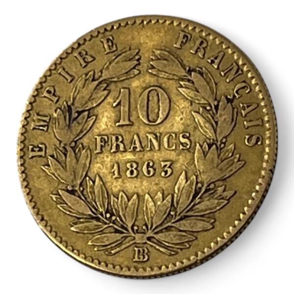 Monnaie de 10 francs Napoléon, 1863 avec grand BB, pas commun du tout.