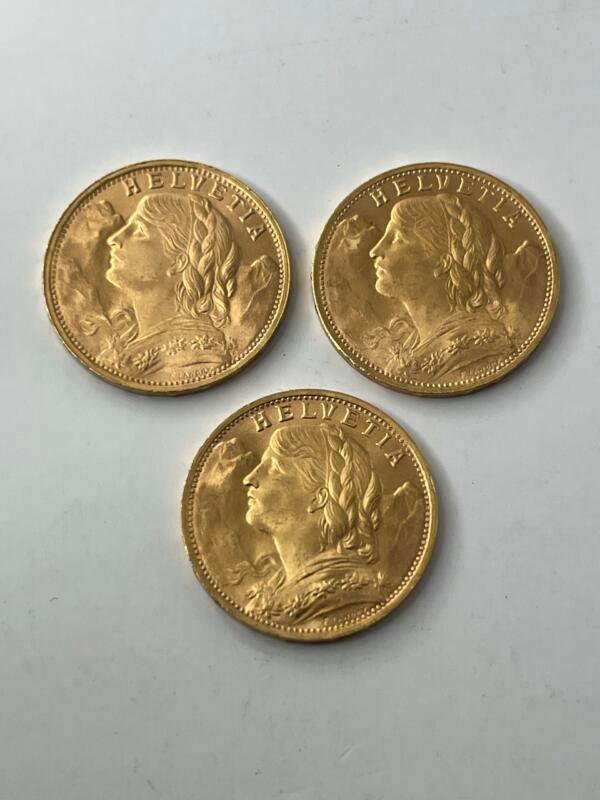 Lot de 3 monnaies de 20 francs coq.