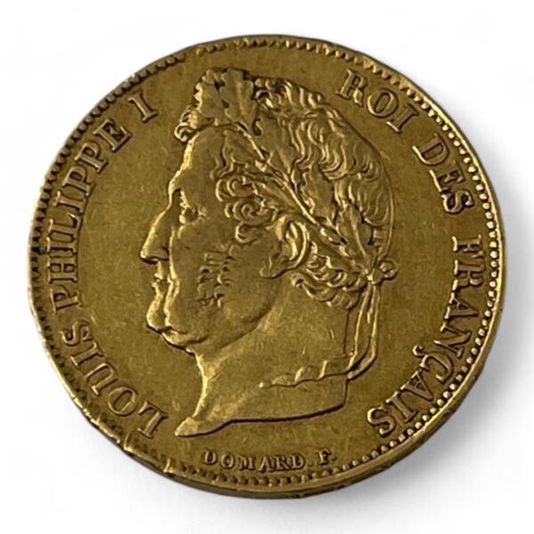 Monnaie de 20 francs Louis-Philippe 1er. Pas commune avec seulement 41,306 exemplaires frappés.