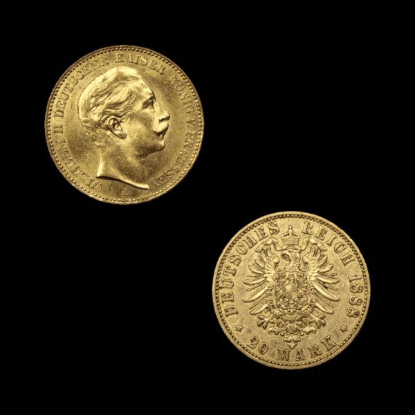 La 20 Reichsmarks se décline en de nombreuses variantes, ce qui fait tout son intérêt numismatique. Les effigies varient selon les États fédérés et les empereurs représentés, notamment Guillaume Ier, Guillaume II ou certains souverains régionaux. Les ateliers de frappe, identifiés par des lettres, produisent des volumes très différents selon les années et les régions. Certaines variantes sont courantes et destinées avant tout à l’investissement, tandis que d’autres, beaucoup plus rares, sont très recherchées par les collectionneurs. Les différences de millésimes, d’ateliers et de portraits influencent fortement la valeur finale. Cette diversité distingue la 20 Reichsmarks des pièces françaises plus homogènes et en fait un terrain d’étude privilégié pour les amateurs de numismatique.
