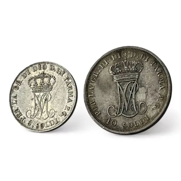 Deux belles monnaies de 5 et 10 soldi du duché de Parme.