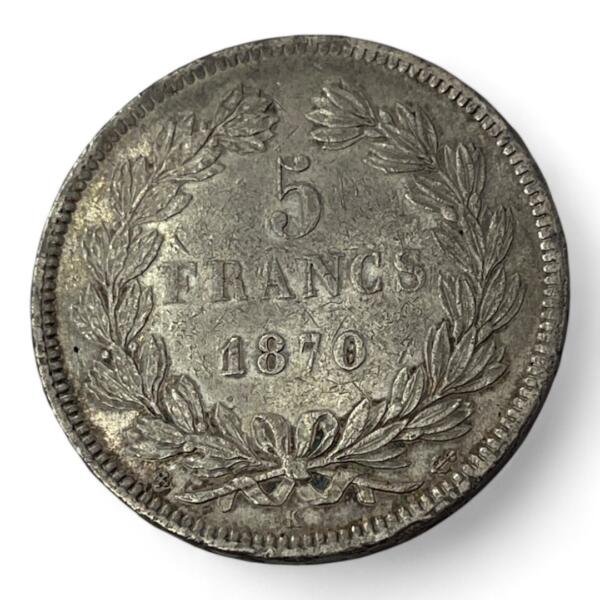5 Francs Cérès – Sans légende – Ancre – Ecu – 1870 K – Bordeaux – Argent