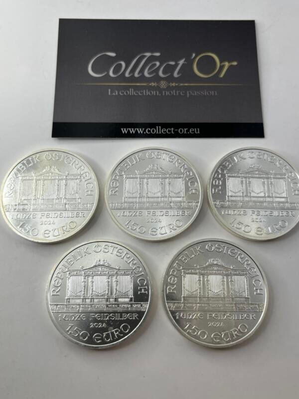 Lot de 5 monnaies – 1 oz / Once – Philharmonique – Autriche (31.1 grammes) en Argent 999.9 – 2024