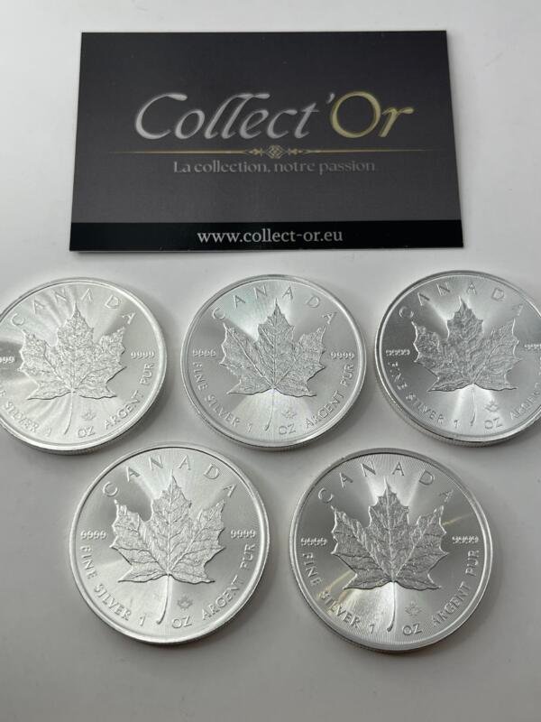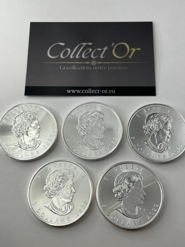 Lot de 5 monnaies – 1 oz / Once – maple leaf canada (31.1 grammes) en Argent 999.9 – 2022