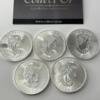Lot de 5 monnaies – 1 oz / Once – maple leaf canada (31.1 grammes) en Argent 999.9 – 2018